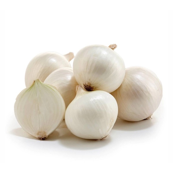 White Onions contain vitamin C, vitamin A, potassium, calcium, fiber, and flavonoids. They are best suited for both raw and cooked applications such as creaming, roasting and pickling. White onion is a cultivar of dry onion, that has a pure white papery skin and a sweet, mild white flesh. The onion can be sauteed to a dark brown color and served to provide a sweet and sour flavor to other foods.